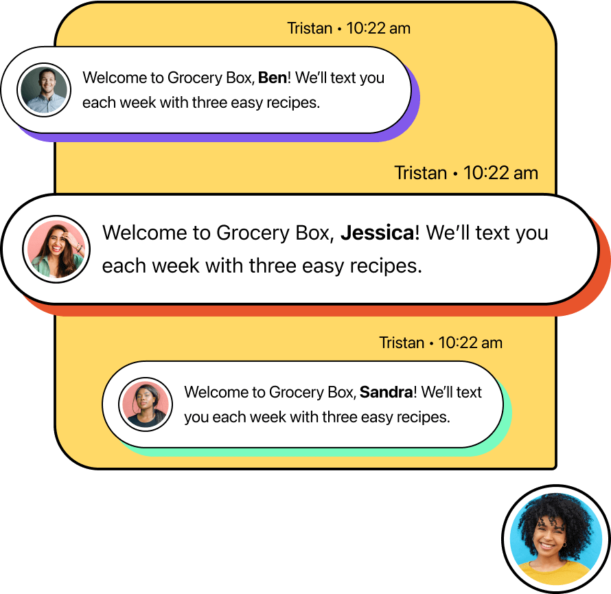 Celebrate key moments and recognize customer achievements with personalized, automated texts. Trigger messages based on birthdays, purchase totals, renewal dates, or any custom field in a contact’s profile. Schedule exact send times or follow up automatically if there’s no response.